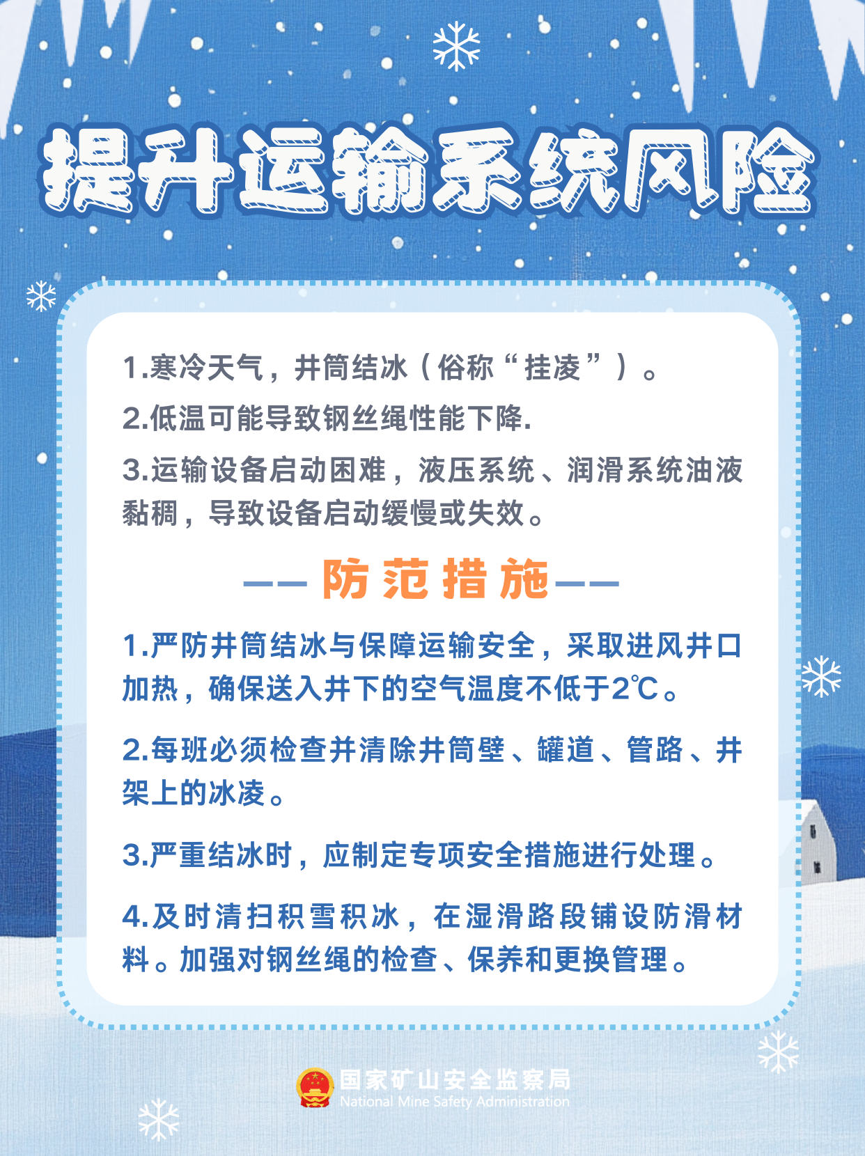 进去“三九”后 目前我(wo)国华(hua)南地区自然环(huan)境冷积极性勾当频仍 中(zhong)高温、雨雪天、冻成等卑劣气候和重(zhong)叠 给矿井生产(chan)加工带来(lai)了多方面清静危(wei)害 年(nian)尾年(nian)分(fen)始终是采矿场恬静原产关头期 春季井工媒矿难见安(an)静(jing)安(an)全有哪类? 应若何预(yu)防? 此类稀有安全危害性及慎(shen)防(fang)方法,请服膺 ↓↓↓